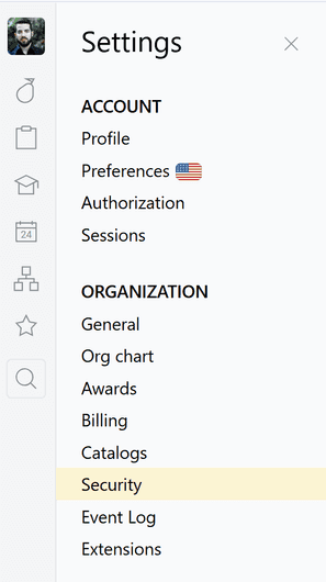 To do that, go into the Security section of your organization’s settings.
