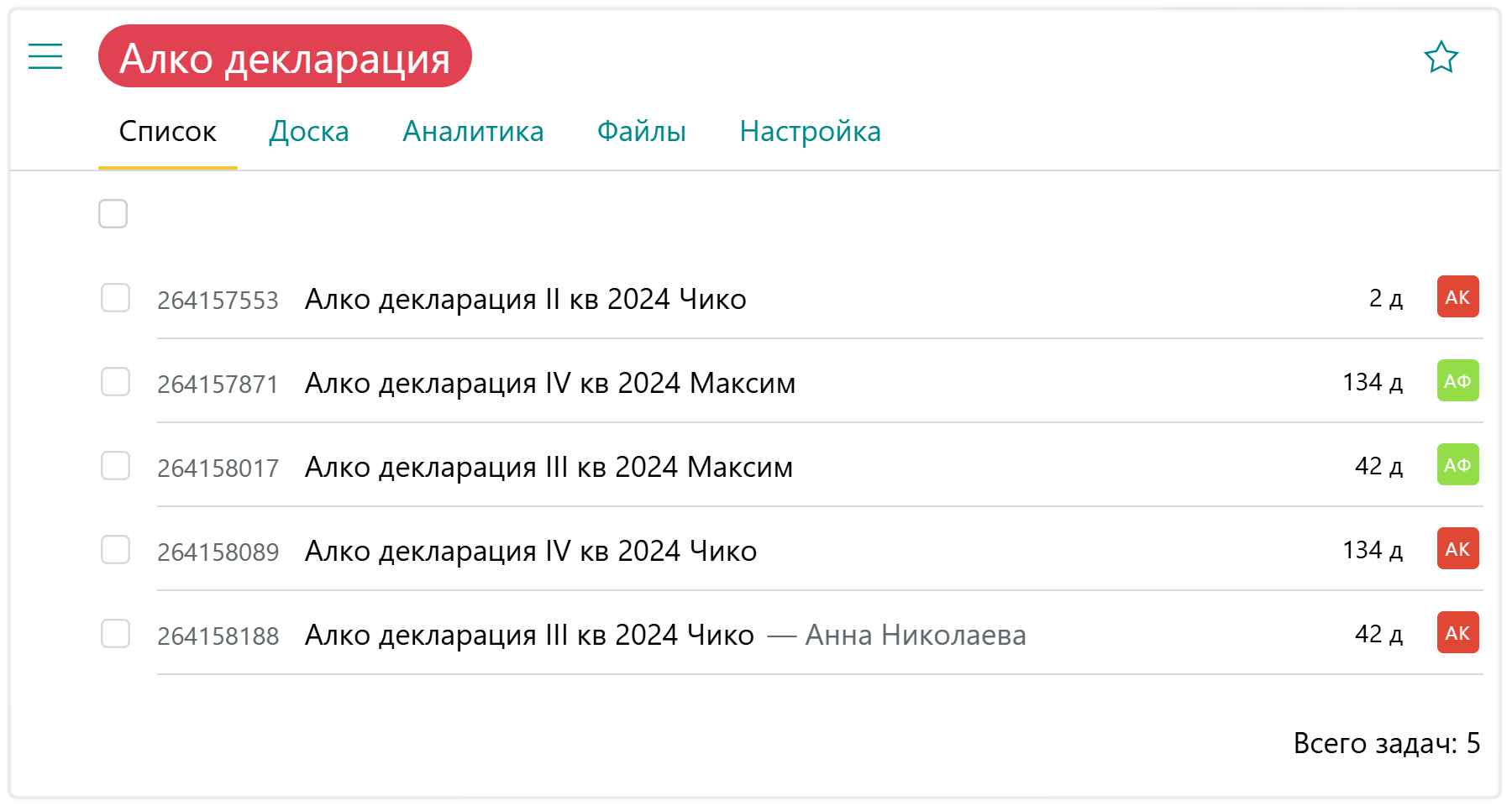 Кроме того, в Pyrus ведется график алкодеклараций на год, чтобы вовремя оформлять лицензии за каждый квартал и не остаться без алкоголя в барах и ресторанах: