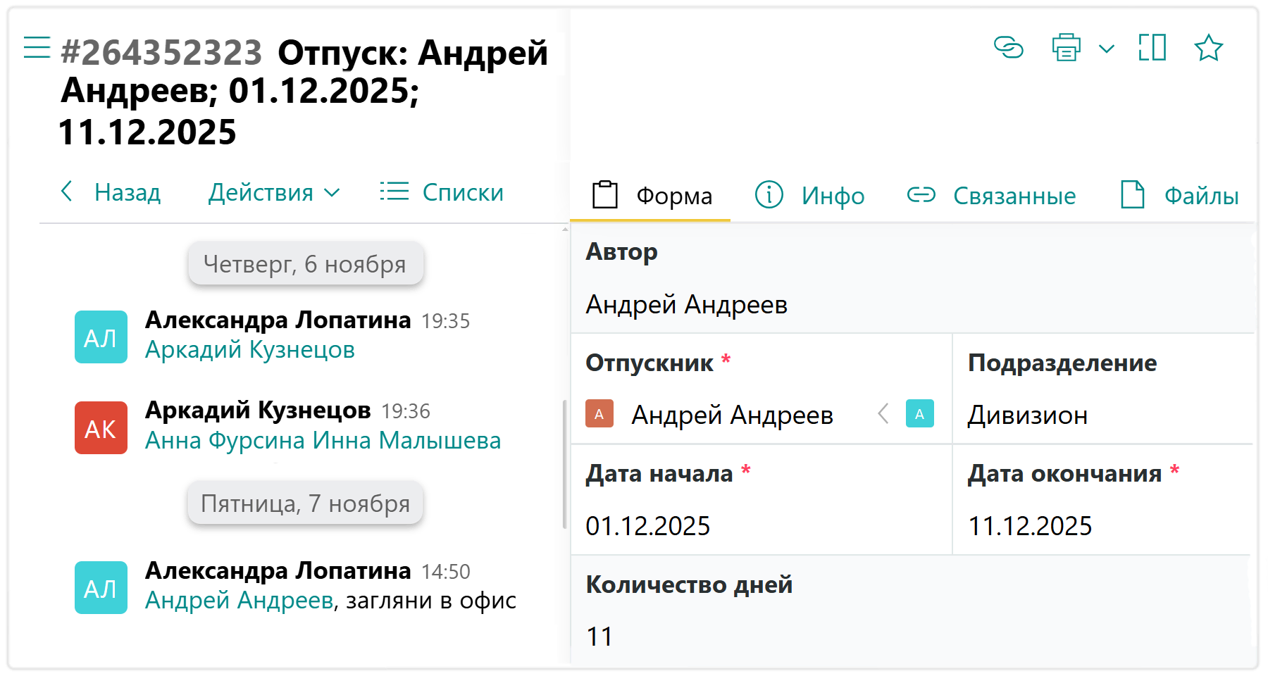 Есть также отдельные формы для отпуска: