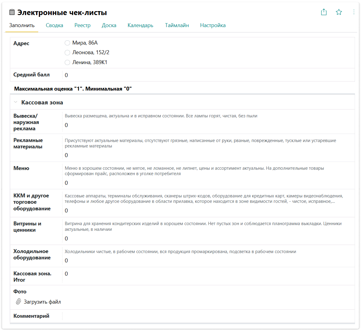 Платформа помогает поддерживать единые стандарты работы и качества сервиса. К примеру, в сети кофеен используются специальные чек-листы для оценки: чистота на кухне и в зале, состояние оборудования, витрина, вывески, персонал.