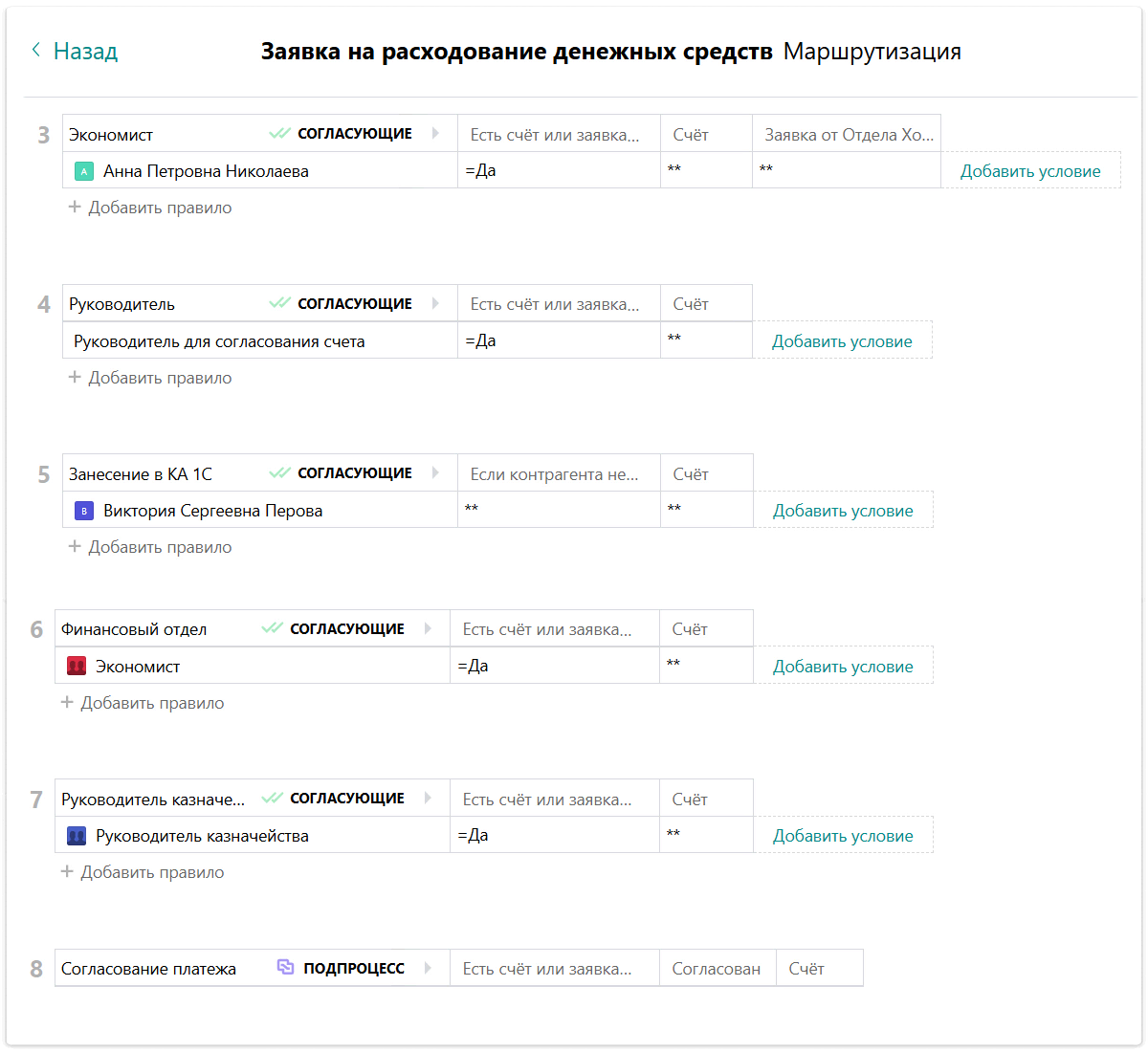 Когда все этапы согласования пройдены, автоматически запускается подпроцесс «Согласование платежа», куда загружается счет и другие документы. Их проверяют сотрудники финансового отдела, а оплата автоматически проводится через 1С.
