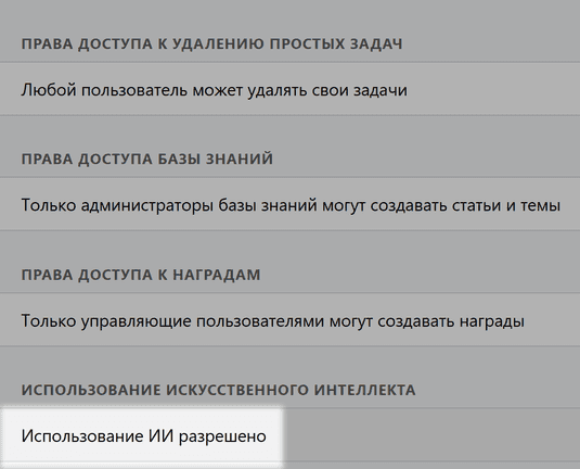 Включите настройку Использование ИИ разрешено.