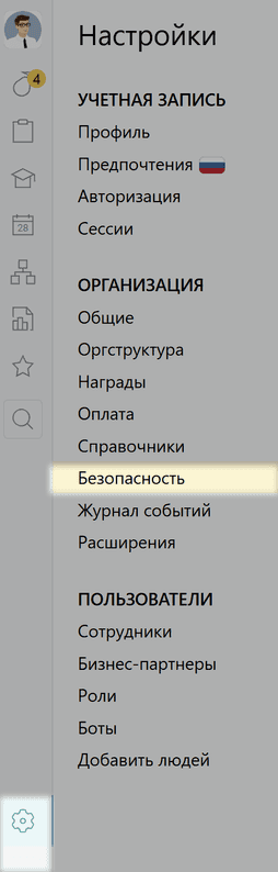 Откройте вкладку Безопасность в разделе Настройки.