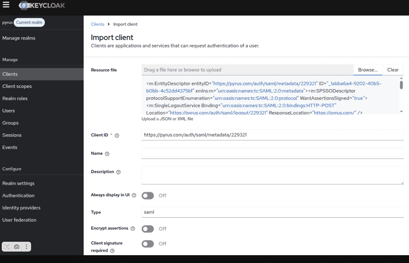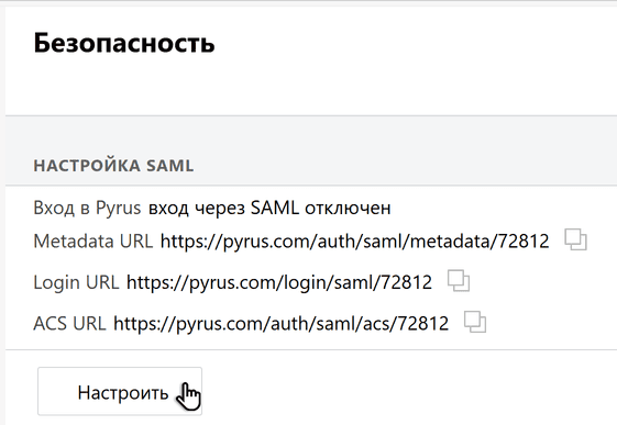 - получите конфигурацию клиента по ссылке вида: https://pyrus.com/auth/saml/metadata/{ORG_ID}