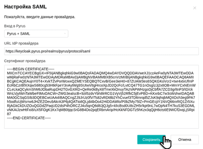 Чтобы настроить интеграцию Pyrus c Keycloak с помощью технологии SAML, вам потребуется: