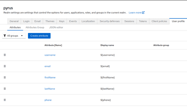 Подсказка: если атрибут phone отсутствует, его можно создать. Для этого войдите в раздел Realm settings, а затем в User profile.