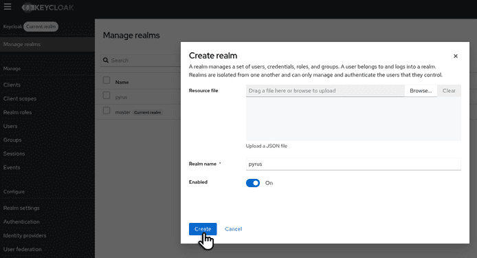 Перед тем как перейти в Pyrus создайте Realm в системе Keycloak.