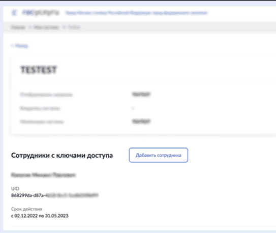 Сотрудник вашей организации, ответственный за формирование идентификационных ключей, должен сформировать идентификационные ключи на сотрудников на доступной ему для формирования API-Key ИС организации-вендора.