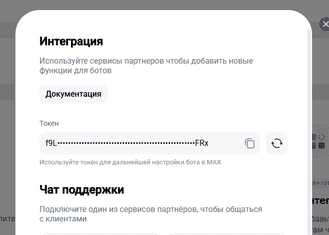 Скопируйте токен и введите его при подключении бота MAX к форме Pyrus.