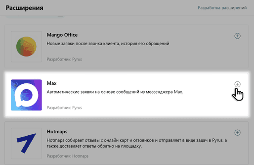 Если вы общаетесь с клиентами в мессенджере MAX, это расширение для вас. Pyrus зафиксирует сообщение, которое клиент отправит вам в мессенджер, и автоматически создаст по нему новую заявку, которую сотрудник службы поддержки мгновенно получит во Входящие. Вести диалог с клиентом можно прямо в Pyrus — он будет получать ваши ответы в мессенджере, а вы его сообщения — в виде комментариев в заявке Pyrus.