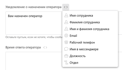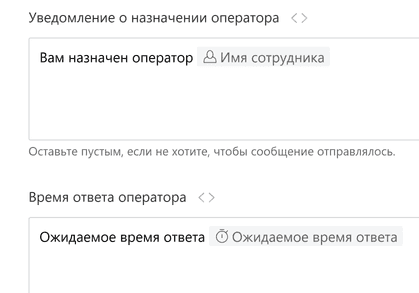 Подсказка: чтобы указать в уведомлении время ожидания оператора и факт его присоединения к чату, используйте плейсхолдеры.