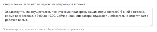 Если клиент обратится за помощью во внеурочное время, можно в настройках расширения задать сообщение, которое он получит.