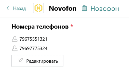 Укажите телефонные номера, подключенные в АТС Новофон, на который будут поступать звонки от клиентов.