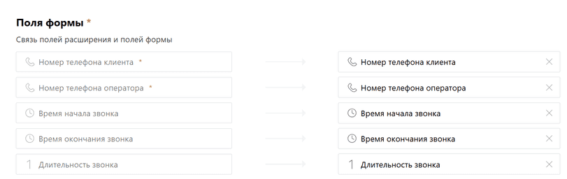 Установите, какие данные о телефонном обращении клиента будут заполнять поля в заявке Pyrus.