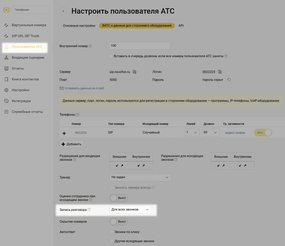 В настройках пользователей АТС включите запись разговоров, чтобы они прикреплялись к заявкам Pyrus.
