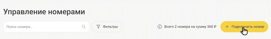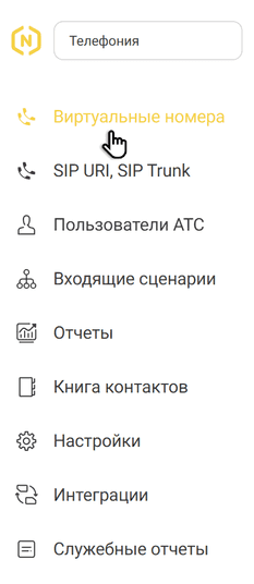 Укажите виртуальные телефонные номера, на которые клиенты будут звонить вашим сотрудникам. Для этого откройте соответствующую вкладку и нажмите Подключить номер. Далее следуйте подсказкам сервиса.