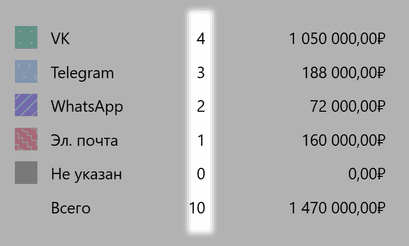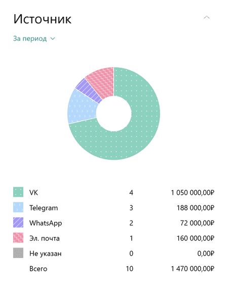 В итоге вы не только держите под контролем работу с заявками клиентов — следите за сроками, храните все заявки в единой системе, — но и видите, какие каналы генерируют больше лидов и выручки.