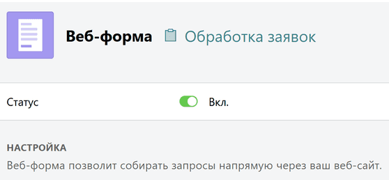 Активируйте веб-форму, нажав на переключатель.