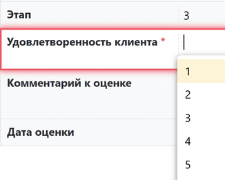 Заявка перемещается по этапам согласования автоматически и наконец достигает последнего этапа и попадает к Контролеру. На данном этапе становится обязательным поле "Удовлетворенность клиента решением". Контролер заполняет данное поле после звонка клиенту. Если поле осталось незаполненным, Pyrus подсветит поле красным. Без заполнения данного поля утвердить заявку Контролер не сможет.
