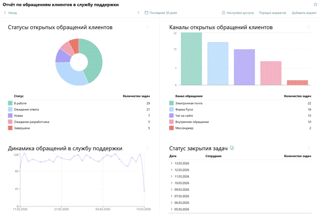 | IV. Публикация и настройка доступа | Настройте расположение виджета и права доступа к отчёту (для раздела Отчёты). |