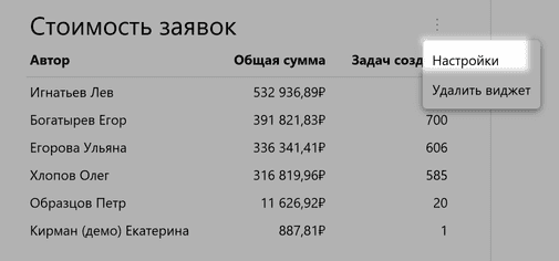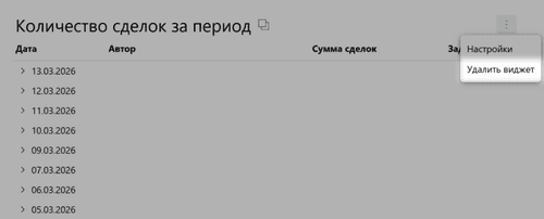 Откройте сводку и наведите курсор на нужный виджет. Около выбранного виджета появится значок с тремя точками, нажмите на него.