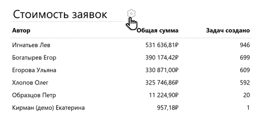 Рядом с заголовком таблицы появится значок шестеренки. Нажмите на него — в правой части экрана откроются детали настройки виджета.