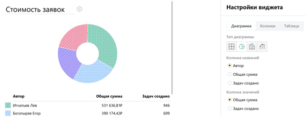 Если вы хотите собрать несколько виджетов, созданных по разным формам, в единый аналитический отчёт, вам необходимо создать Отчёт. Подробнее про создание, настройку отчётов и управление правами доступа к ним читайте в следующей статье.