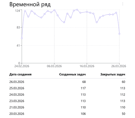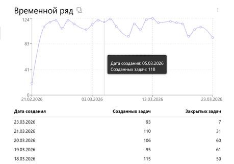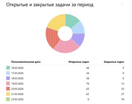 Пример: посмотрим, как распределены открытые и закрытые задачи для значений поля типа Дата и Время в заданном интервале времени.