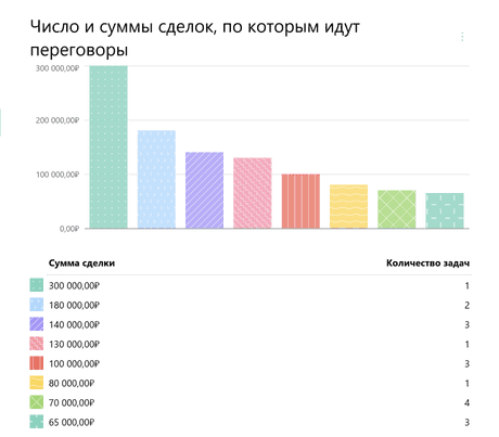 Подсказка: вместо кода поля ${Деньги} можно использовать иные поля числового типа, при этом отображаться на графике будут строго числовые значения, например ${Число}, ${Контакт}, responsible_id, step и другие.