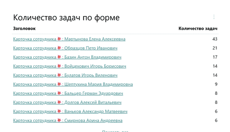 Пример: рассчитаем число открытых задач, сгруппированных по выбранному значению поля типа Форма, с отображением наименования и ссылки на выбранную задачу в форме.