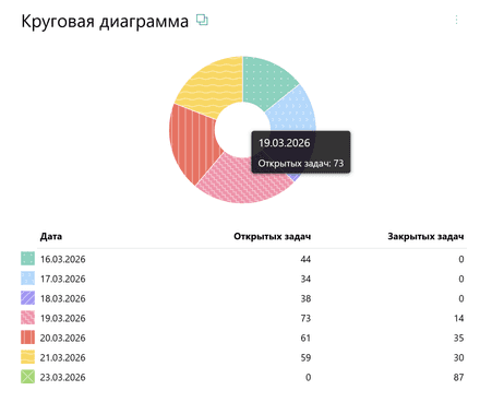 Подсказка: если вы хотите, чтобы виджет отображал только круговую диаграмму, установите в чекбоксе галочку Скрывать таблицу.