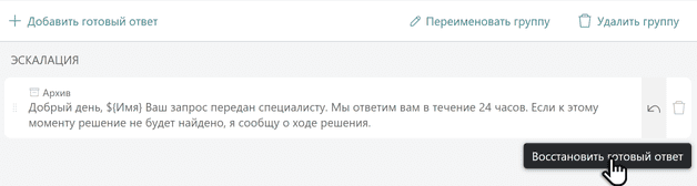 Также для большого числа готовых ответов клиентам удобна функция архивации. Если какой-либо ответ становится неактуальным, но может понадобиться в будущем – просто уберите его в архив.