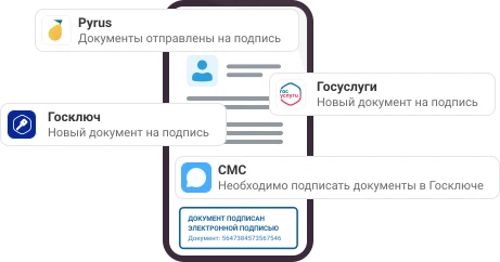 - Уведомления о подписи в Pyrus, на Госуслугах и в Госключе