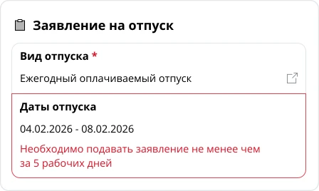 - Автоматическая проверка корректности отпусков